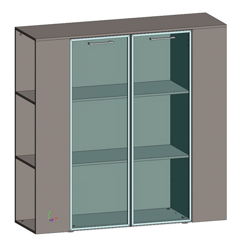 Шкаф средний универсальный с боковыми стеллажами (двери в ал. рамке, стекло прозрачное)