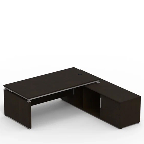 Конфигурация: стол руководителя Г-образной формы с приставным столиком слева, одной открытой дверцей и отсеком для процессора