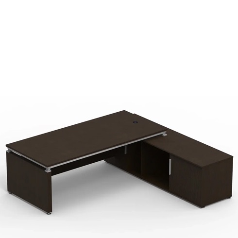 Конфигурация: стол руководителя Г-образной формы с приставным столиком слева, одной открытой дверцей и отсеком для процессора