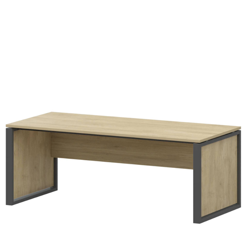 КРАТКОЕ ОПИСАНИЕ: Исполнение:дуб сафари,лиственница, сосна винтер. Тиснение: Шпон . Металлокаркас (М)-профиль 60*30. Цвет: металлик , белый,антрацит. Соединение со столешницей- "металл-металл". Столешницы,опоры столов, приставка, топы и основания шкафов изготовлены из ЛДСП толщиной 25мм, облицованы противоударной кромкой ПВХ 2 мм производства фирмы Rehau (Германия) в цвет изделия. Каркасы стеллажей и тумб, фасады изготовлены из ЛДСП толщиной 16мм. Ящики тумб- ЛДСП 16мм , цвет: лайм. Стекло тонированное в массе 4мм-графит. В шкафах использованы декоративные регулируемые опоры H-50мм цвета матовый хром.Столешницы соеденены с опорами проставками цвета матовый хром.