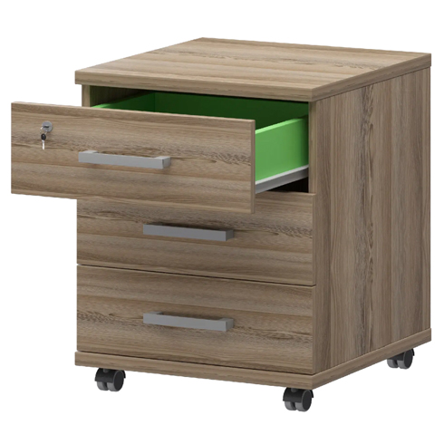 КРАТКОЕ ОПИСАНИЕ: Исполнение:дуб сафари,лиственница, сосна винтер. Тиснение: Шпон . Металлокаркас (М)-профиль 60*30. Цвет: металлик , белый,антрацит. Соединение со столешницей- "металл-металл". Столешницы,опоры столов, приставка, топы и основания шкафов изготовлены из ЛДСП толщиной 25мм, облицованы противоударной кромкой ПВХ 2 мм производства фирмы Rehau (Германия) в цвет изделия. Каркасы стеллажей и тумб, фасады изготовлены из ЛДСП толщиной 16мм. Ящики тумб- ЛДСП 16мм , цвет: лайм. Стекло тонированное в массе 4мм-графит. В шкафах использованы декоративные регулируемые опоры H-50мм цвета матовый хром.Столешницы соеденены с опорами проставками цвета матовый хром.