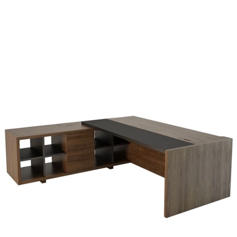 Стол руководителя с тумбой, глубиной 600, левый кожа