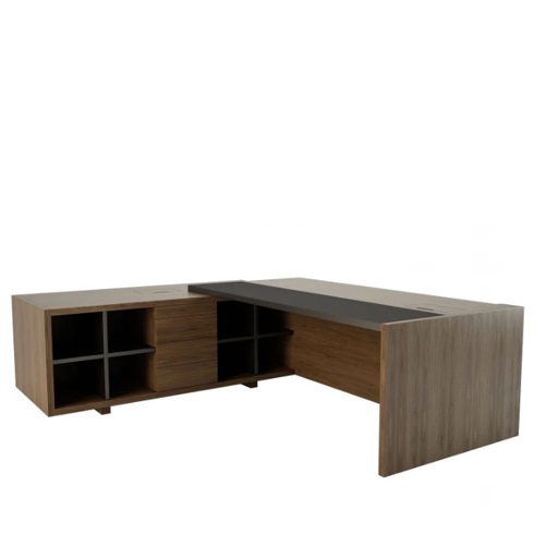 Стол руководителя с тумбой, глубиной 820, левый кожа