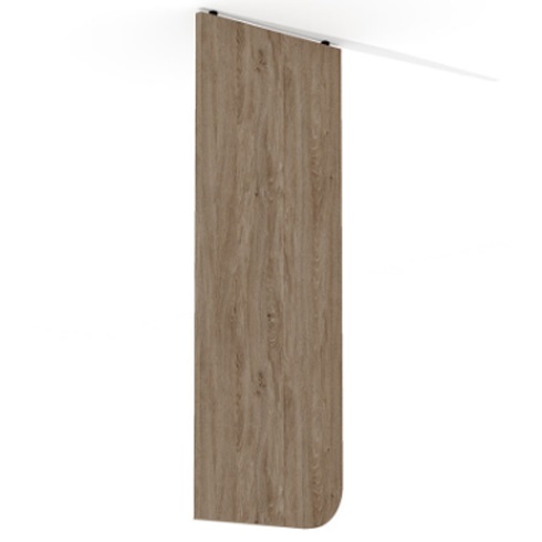 Торцевая панель является неотъемлемой частью стойки. Торцевые панели должны устанавливаться в крайних модулях стойки с правой и левой стороны соответственно. В серии предусмотрены два вида панелей: широкая для завершения прямых модулей и укороченная для углового модуля. Укороченная опора при установке не перекрывает боковой доступ к столешнице и подстольному пространству углового модуля, позволяя собирать более компактные конструкции.