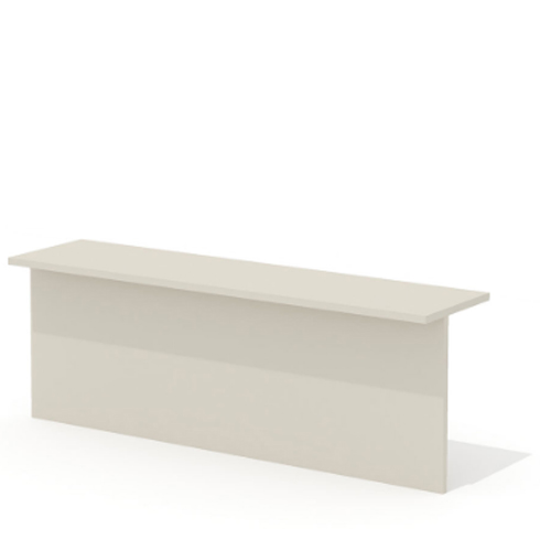 Торцевая панель является неотъемлемой частью стойки. Торцевые панели должны устанавливаться в крайних модулях стойки с правой и левой стороны соответственно. В серии предусмотрены два вида панелей: широкая для завершения прямых модулей и укороченная для углового модуля. Укороченная опора при установке не перекрывает боковой доступ к столешнице и подстольному пространству углового модуля, позволяя собирать более компактные конструкции.