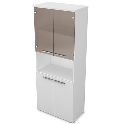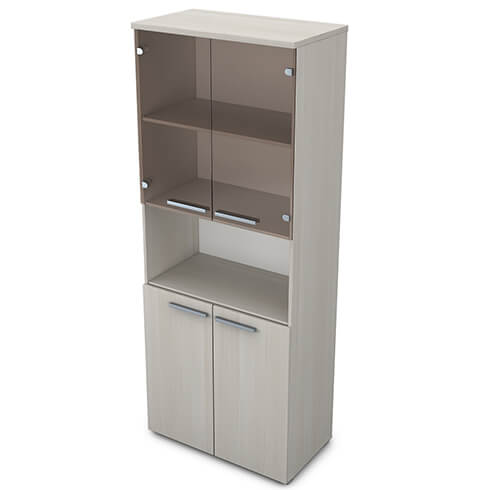 Шкаф высокий 205 см закрытый с нишей (2 двери ДСП, 2 двери стекло тонированное)