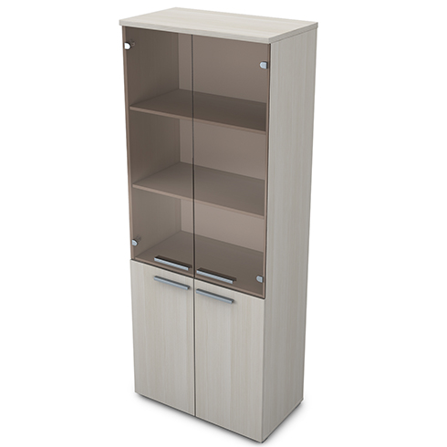 Шкаф высокий 205 см закрытый (2 двери ДСП, 2 двери стело тонированное)