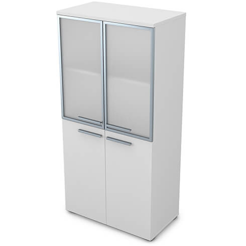 Шкаф высокий 165 см закрытый (2 двери ДСП, 2 двери стекло в алюм. раме)