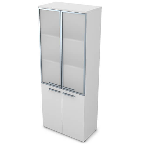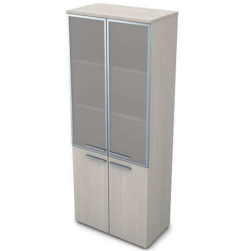 Шкаф высокий 205 см закрытый (2 двери ДСП, 2 двери стело в алюм. раме)