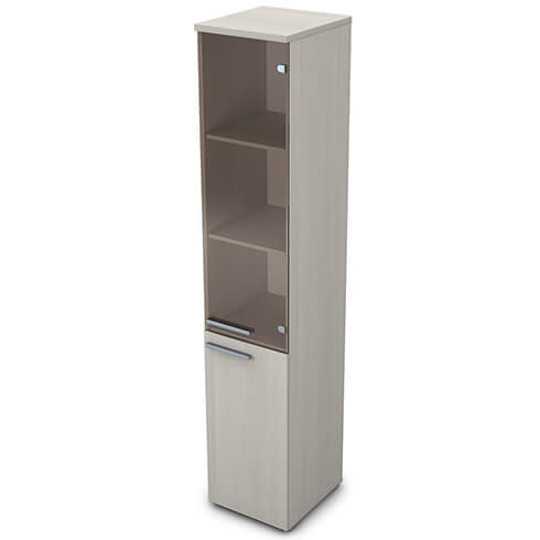 Пенал высокий 205 см закрытый универсальный (1 дверь ДСП, 1 дверь стекло тонированное)