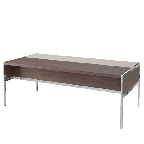 Стол руководителя, левый (матовая отделка+столешница в коже, опоры - хром)
