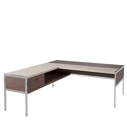 Стол руководителя, левый (матовая отделка+столешница в коже, опоры эпокси)
