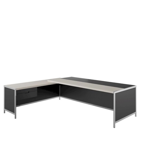 Стол руководителя, правый (полуглянцевая отделка/лакированная матовая+ кожа, опоры - хром)