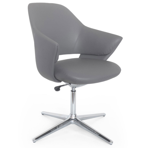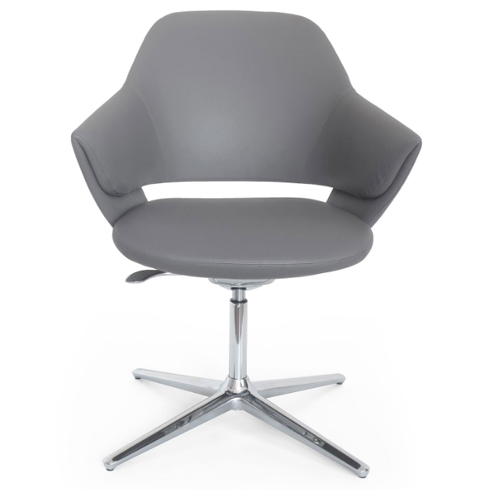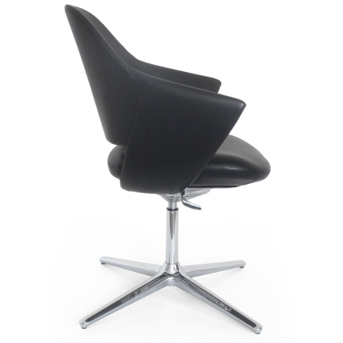 Кресло для посетителей KH-Star-X — эргономичная модель с привлекающим внимание дизайном сиденья, изящной четырехлучевой опорой и удобными подлокотниками.