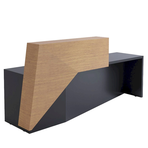 Рабочая зона стойки ресепшн. Изготовлена из МДФ плотностью 655 кг/м3 толщиной 40 мм, с закругленными