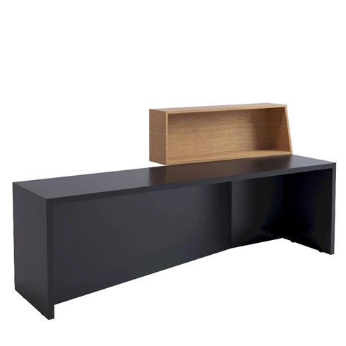 Рабочая зона стойки ресепшн. Изготовлена из МДФ плотностью 655 кг/м3 толщиной 40 мм, с закругленными