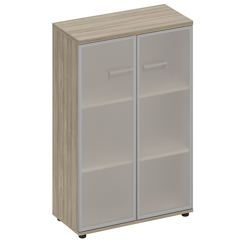 Шкаф укомплектован двумя матированными стеклянными дверями в рамке без замка