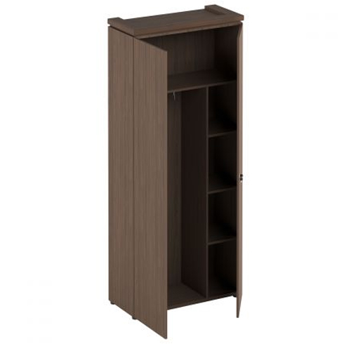 Все фасадные элементы изделий обложены массивом твердолиственных пород древесины толщиной 10 мм, придающим кабинету более дорогой статусный внешний вид. Выверенную геометрию подчеркивают ручки, выполненные из массива твердолиственных пород древесины, используемые на всех видах шкафов и тумб кабинета. Стеклянные двери также исполнены в рамке из МДФ, облицованного шпоном твердолиственных пород древесины, а с торцевой стороны рамки предусмотрена ручка, расположенная вдоль всей ширины дверцы, выполненная из массива твердолиственных пород древесины.