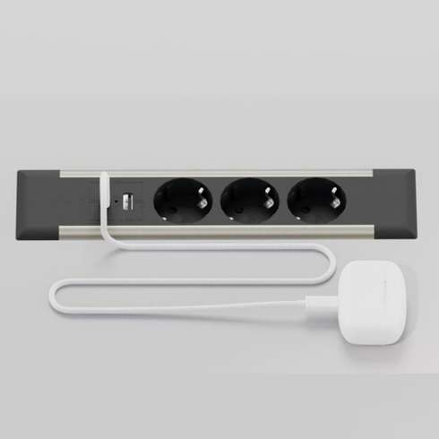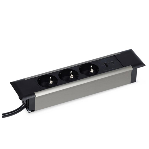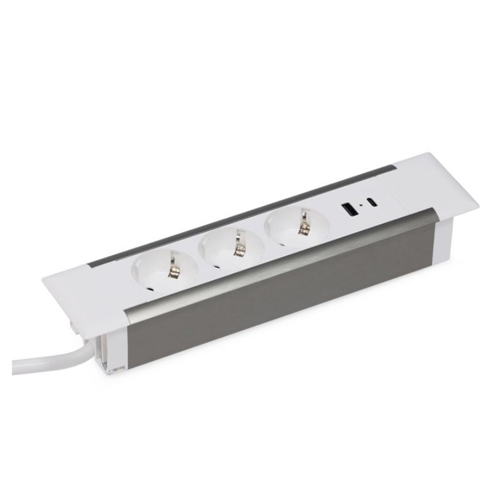 Блок розеток встраиваемый в стол (3 розетки, USB-A, USB-C)
