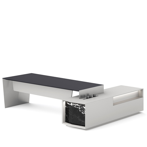 Кабинет Экзюпери | Exupery – собственная, 100%, высокотехнологичная разработка фабрики Directoria&Moder. Премиальная покраска столешницы, обладающей свойством «маттач» или «анти-палец» - на ней не остаются отпечатки. Тактильно очень приятная и одновременно технологичная, позволяющая устранять феном любые царапины, она покрыта итальянским лаком, с характеристиками знаменитого "ФЕНИКС" | FENIX. Это самый дорогой материал на котором не остаются отпечатки пальцев, самовосстанавливающийся при нагревании. Но "ФЕНИКС" | FENIX используется для изготовления прямоугольных деталей мебели, наша же покраска позволяет изготавливать овальные или фигурные изделия.