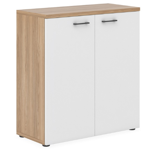 У шкафов, - корпус и полки Дуб Честерфилд; фасады и задняя стенка Белые, ручки антрацит.